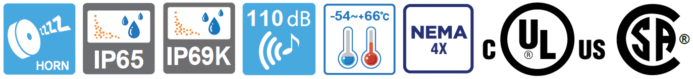 – Cumple con la norma IP69K para soportar lavados a alta presión y temperatura.