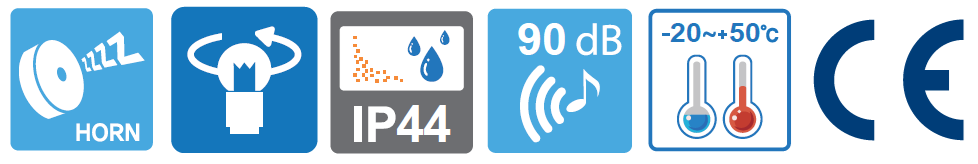 La Circulina SERIES S80AU es una Luz de advertencia giratoria con bombilla de 5W, Ø80 mm y máx. 90dB con soporte de pared que facilita el montaje, no se requieren soportes de montaje adicionales y su bloque de terminales incorporado diseñado dentro del soporte de montaje lateral facilita el cableado y emplea un sistema de transmisión de potencia especial que gracias a este sistema los contactos de la carcasa envían la alimentación directamente al bloque de terminales.