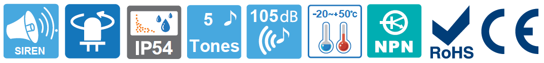 La Sirena Electrónica Multitono con Circulina SERIES S125DLR es una Sirena que combina luz de Ø125 mm de señal/advertencia y bocina eléctrica que ofrecen señalización acústica y visual en una sola unidad.