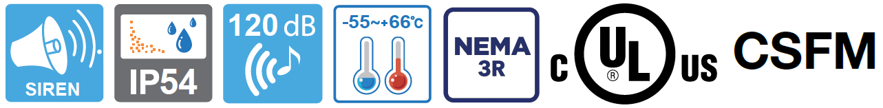 En primer lugar, la Sirena SelecTone® SERIE 300GC de 120dB y 15W cuenta con 200.7 mm de Ancho, 315.0 mm de altura y 215.9 mm de profundidad. Está disponible en 24 VAC/DC, 120 o 240 VAC para 50/60 Hz y ha sido diseñado para Zonas Peligrosas. Asimismo, el altavoz amplificador SelecTone® modelo 300GCX está diseñado para producir tonos, mensajes de voz digitales y megafonía en directo en entornos adversos.