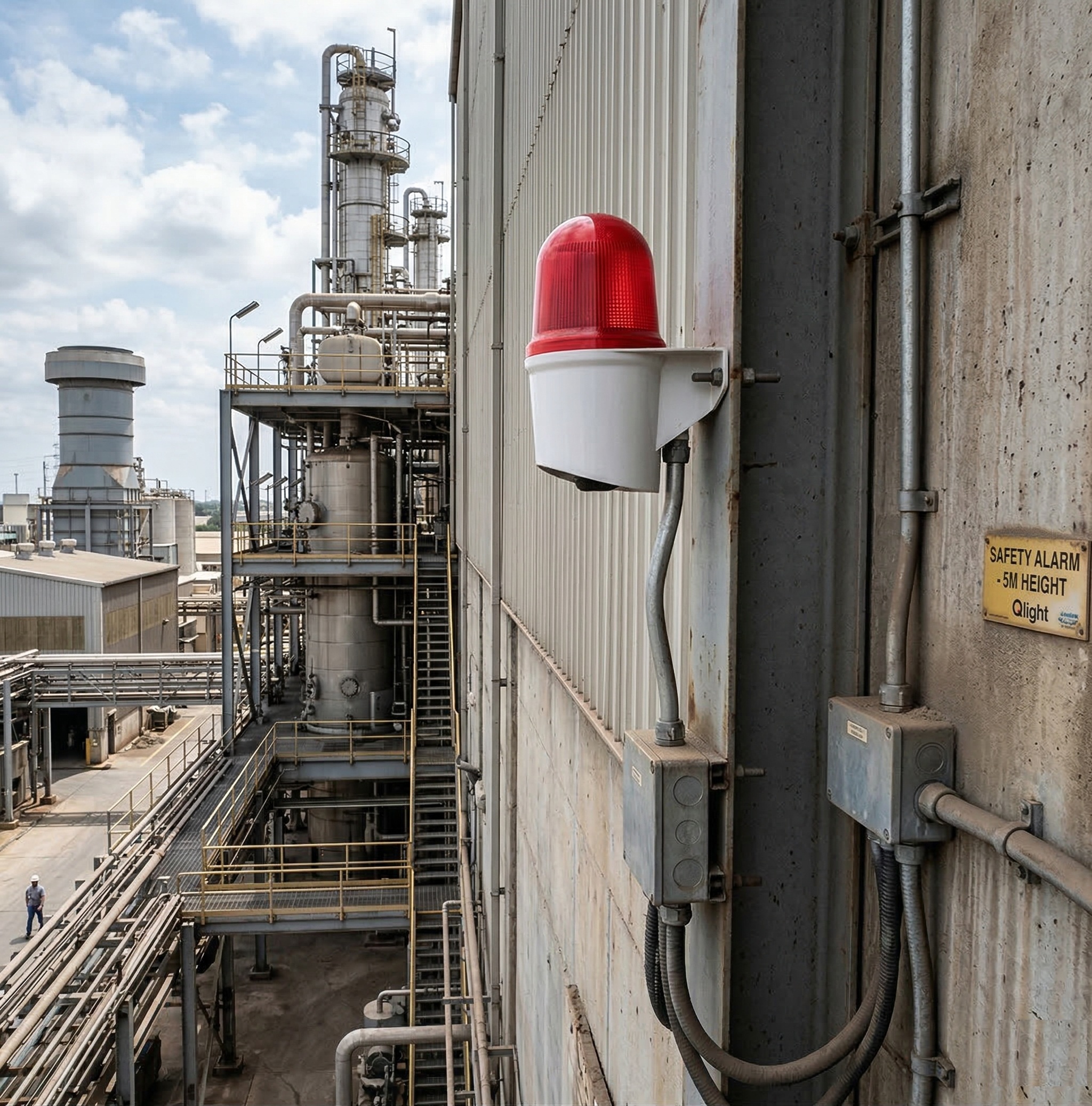 BOCINA CON LUZ LED PERMANENTE O FLASH ROJO S60ADL-220-R QLIGHT