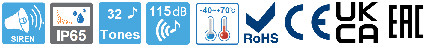 – Sirena multitono: 32 tonos para una amplia gama de aplicaciones.