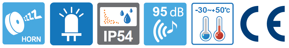 • Adecuado para aplicaciones que requieren señales audibles descendentes en ubicaciones elevadas