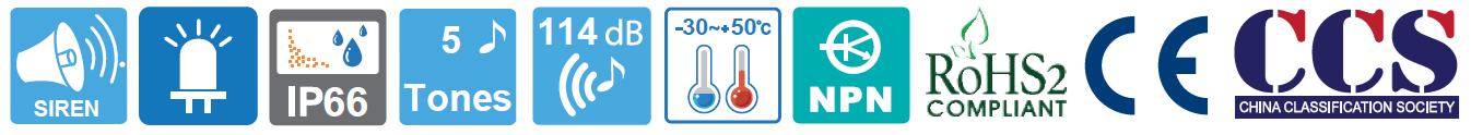 La Sirena con Circulina SERIES SHDL / SHDLP es una combinación de baliza LED con señal fija/intermitente y sirena electrónica con excelente durabilidad y estructura perfectamente cerrada, diseñadas para embarcaciones y aplicaciones en la industria pesada.