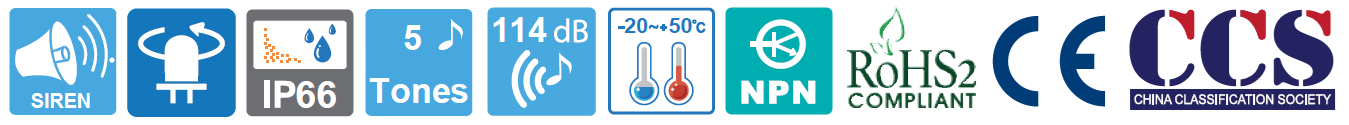 La Sirena con Circulina SERIES SHDLR / SHDLRP es una combinación de baliza LED giratoria y sirena electrónica con excelente durabilidad y estructura perfectamente cerrada, diseñadas para embarcaciones y aplicaciones en la industria pesada.